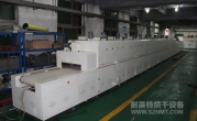 2、外形尺寸(約):總長24000mm*總高1690mm*總寬1220mm,地面到網(wǎng)帶的高度為850mm,爐體內(nèi)進(jìn)料高度為150mm;烘干部分總長14000mm,分7段獨(dú)立控溫(每段4個(gè)測溫?zé)犭娕迹?,每?000mm。冷卻段長4000mm,UV預(yù)留區(qū)長2000mm,前后緩沖區(qū)各長500mm,進(jìn)出料部分長1500mm, 爐體前后裝有急停開關(guān)。